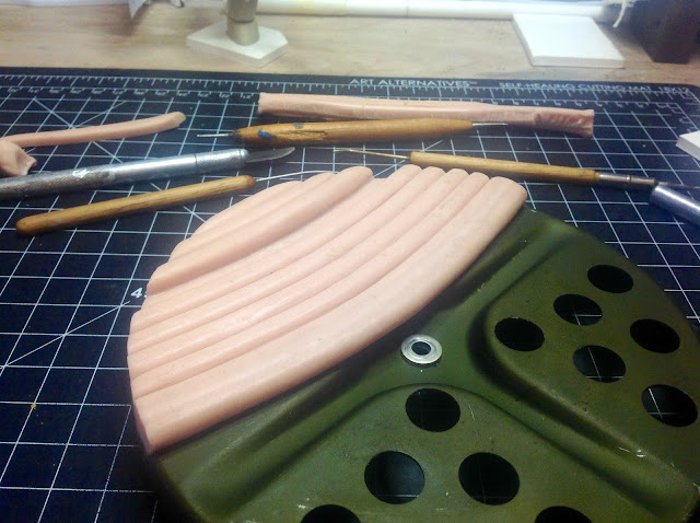 The Super Sculpey bio-mechanical deck had not been baked yet. Here it is grafted onto a smaller organic base.
